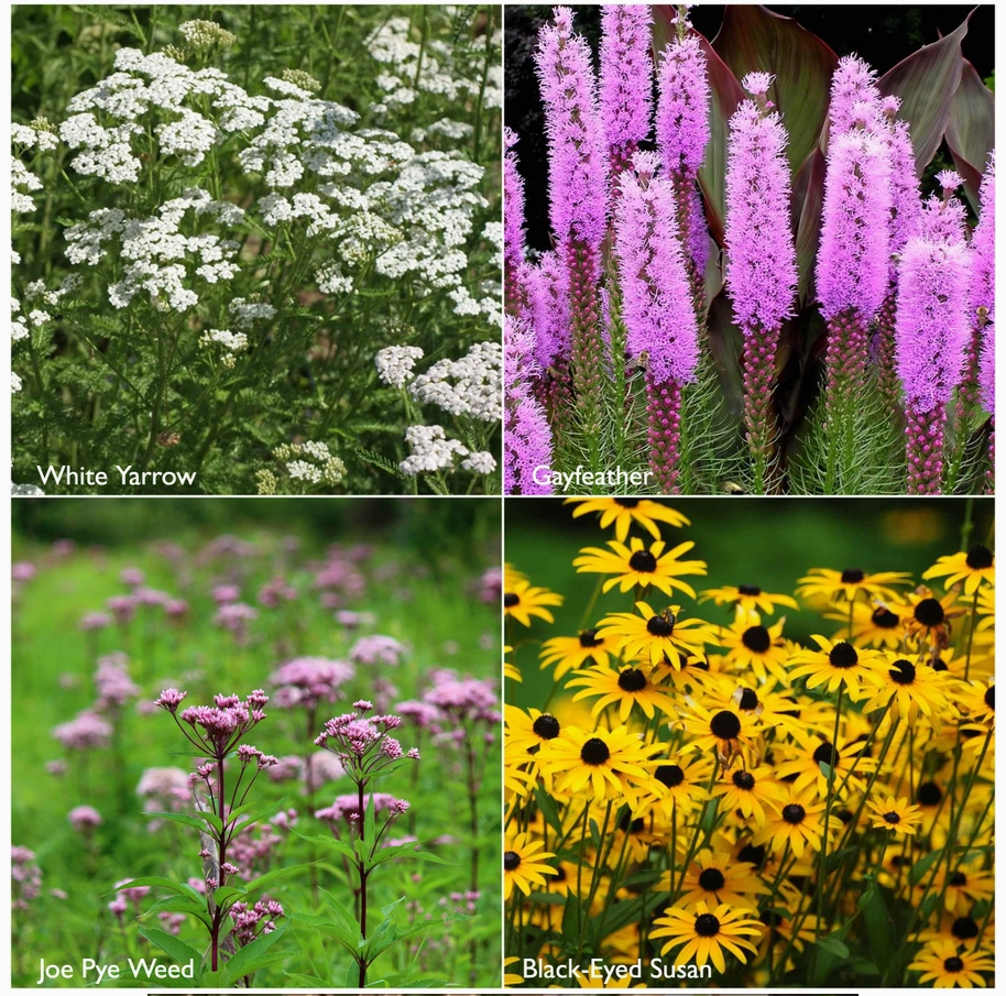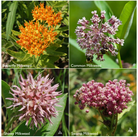 Milkweed Varieties: Butterfly (Asclepias tuberosa), Showy (Asclepias speciosa), Swamp (Asclepias incarnata), Common (Asclepias syriaca) Nectar Varieties: White Yarrow (Achillea millefolium), Gayfeather (Liatris Spicata), Joe Pyeweed (Eupatorium Maculatum), Black-Eyed Susan (Rudbeckia hirta)