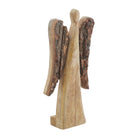 Crafted from durable tropical wood and stained to enhance its natural beauty, this angel is a graceful addition to mantels, shelves, or tabletops. Its simple yet meaningful silhouette adds warmth and serenity to any holiday display. The balanced contrast between the light and dark tones creates a visually striking piece that fits seamlessly with both rustic and traditional seasonal decor.