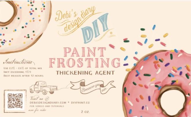 Debi's DIY Paint Frosting is a clear liquid paint thickener for raised stencils, craft textures and effects! A 2oz jar contains enough product to thicken 3 quarts of paint, WOW! A little makes a lot, can be used with most paints!
