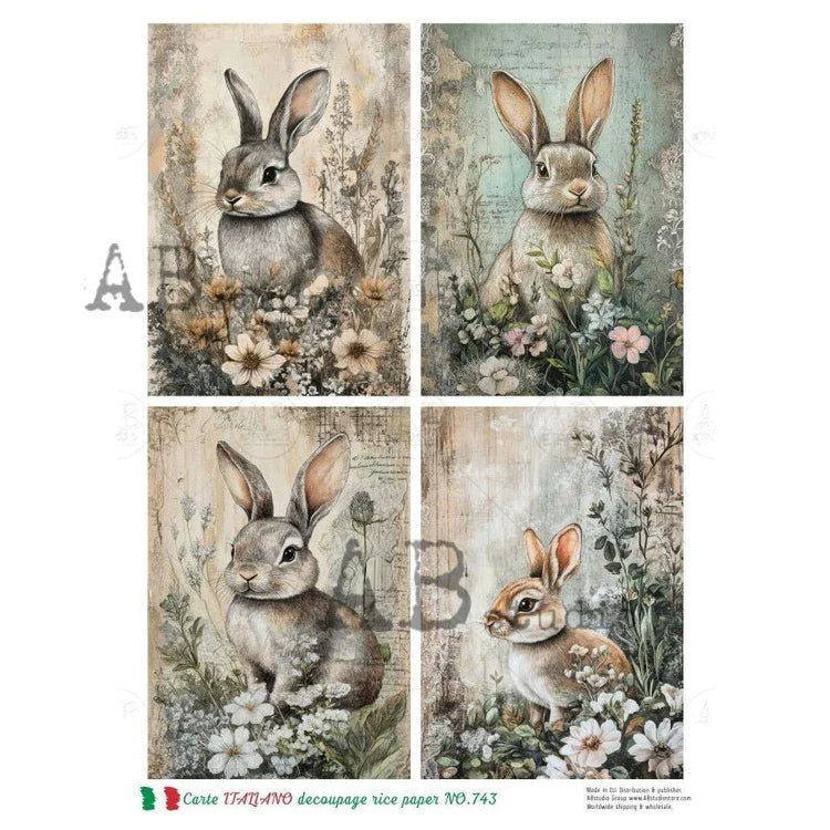 A4 Carte 743 Botanical Bunny Portraits Quad