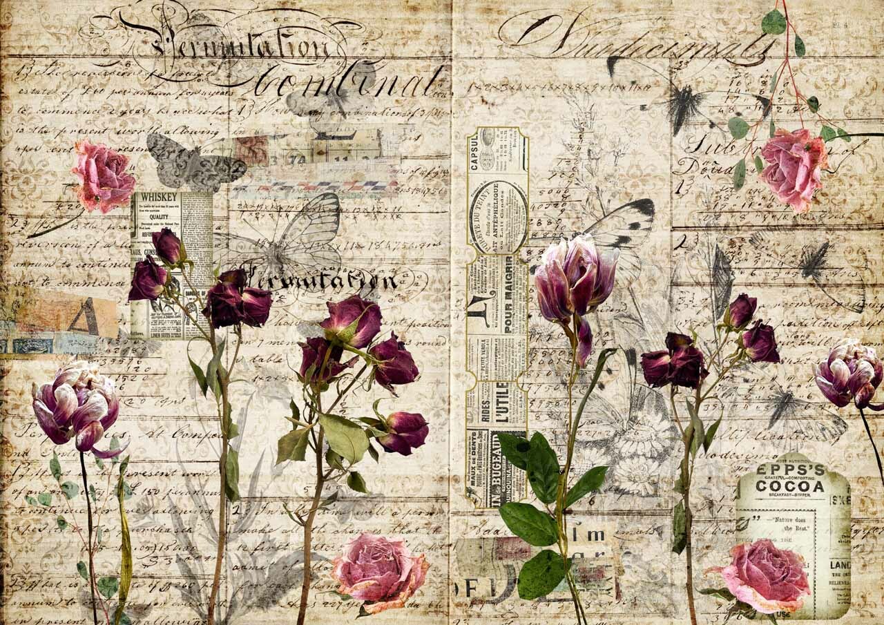 Printed on rice paper in Italy on the highest quality paper available on the market today. Rice paper has been used for decades in arts and crafts with decoupage. Torn edges will blend beautifully into a background. You should start with a white or light colored background to make the colors appear brighter and more vivid.