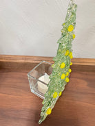 Patti of PK Designs starts the holiday season with a large votive holder in the shape of a tree. Using colored glass, frit, stringers, Glass Line Paints, and glass dots you will create your own tree design, approx. 7" high. Inspiration cards & samples are available to boost your creativity. The votive holder will then be taken off site to fired and a square glass votive holder will be added on the back. The completed projects will be returned to the store within 2 weeks. All glass, tools, instruction, and battery operated votive candle are included.