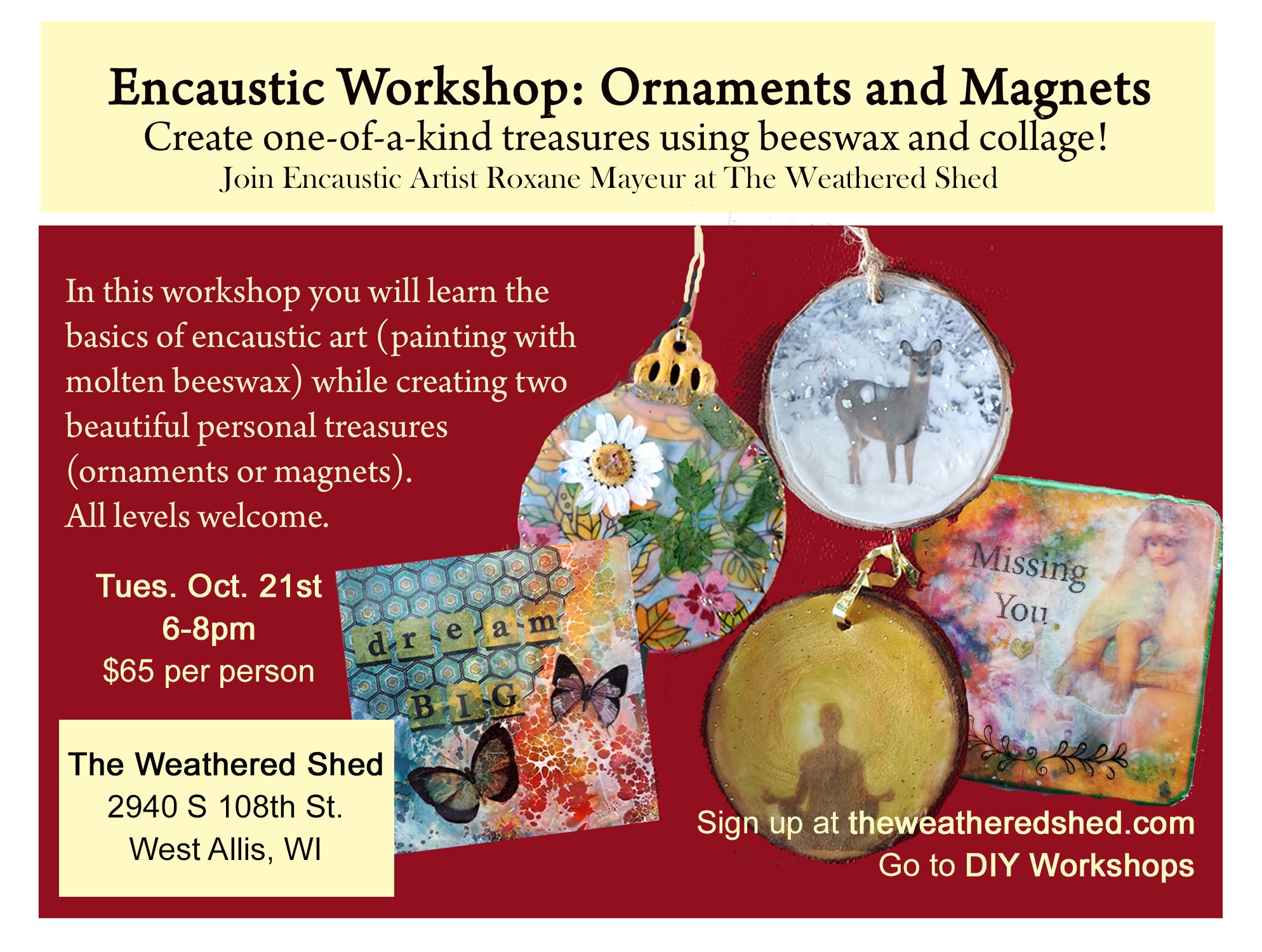 Encaustic Workshop - Ornaments & Magnets Tues., Oct. 21 6pm-8pm