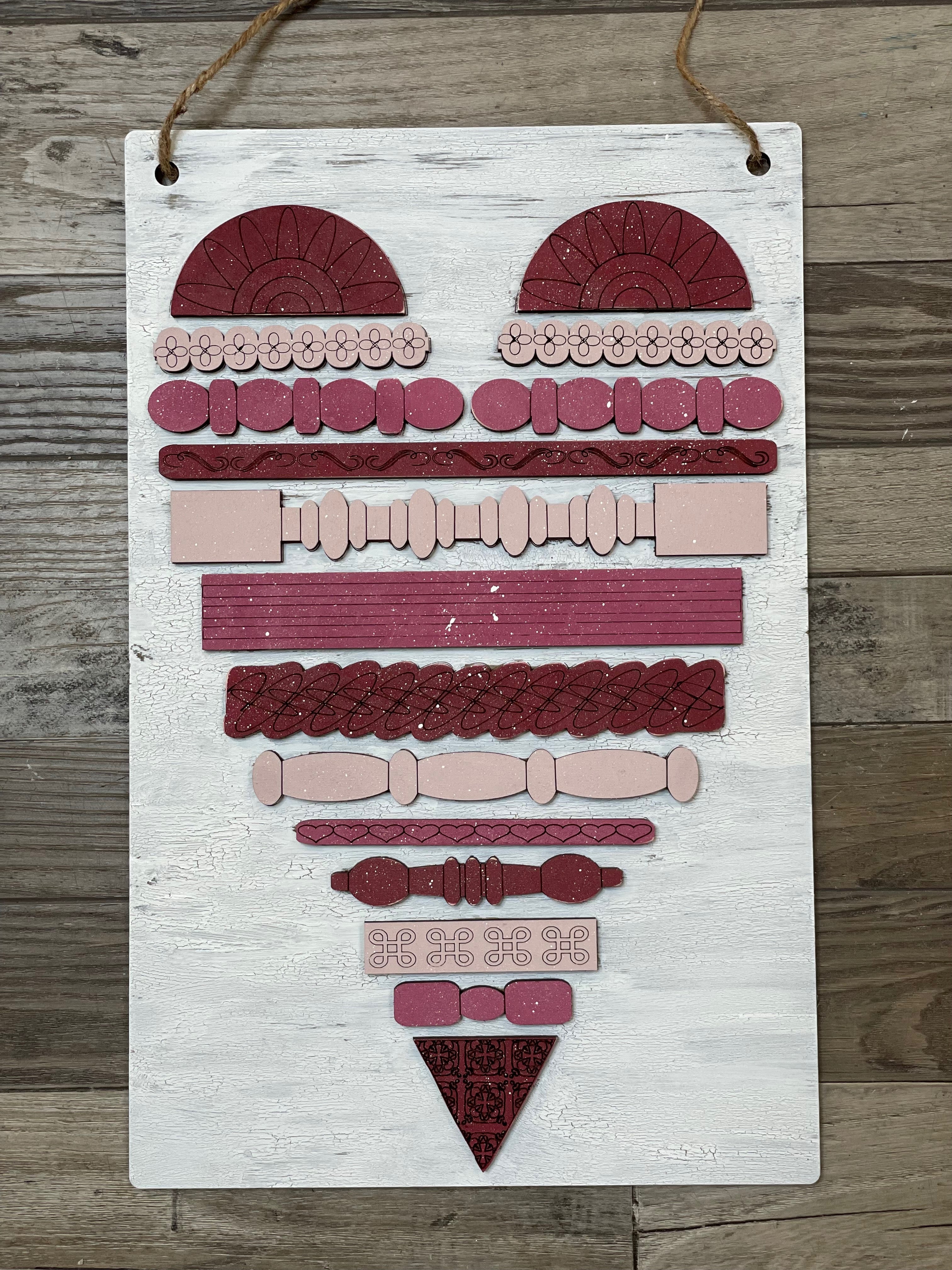 Cut from Birch Ply, all pieces come unfinished/unpainted and will need to be glued together. You can finish with paint and/or stain to your desired look. Kit will also contain 2 foam wedge sponges for painting the spindles and twine for hanging.