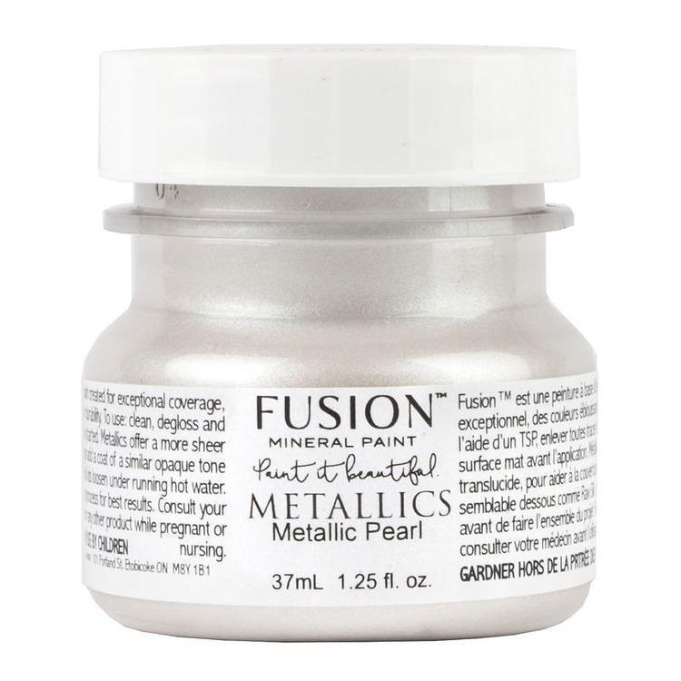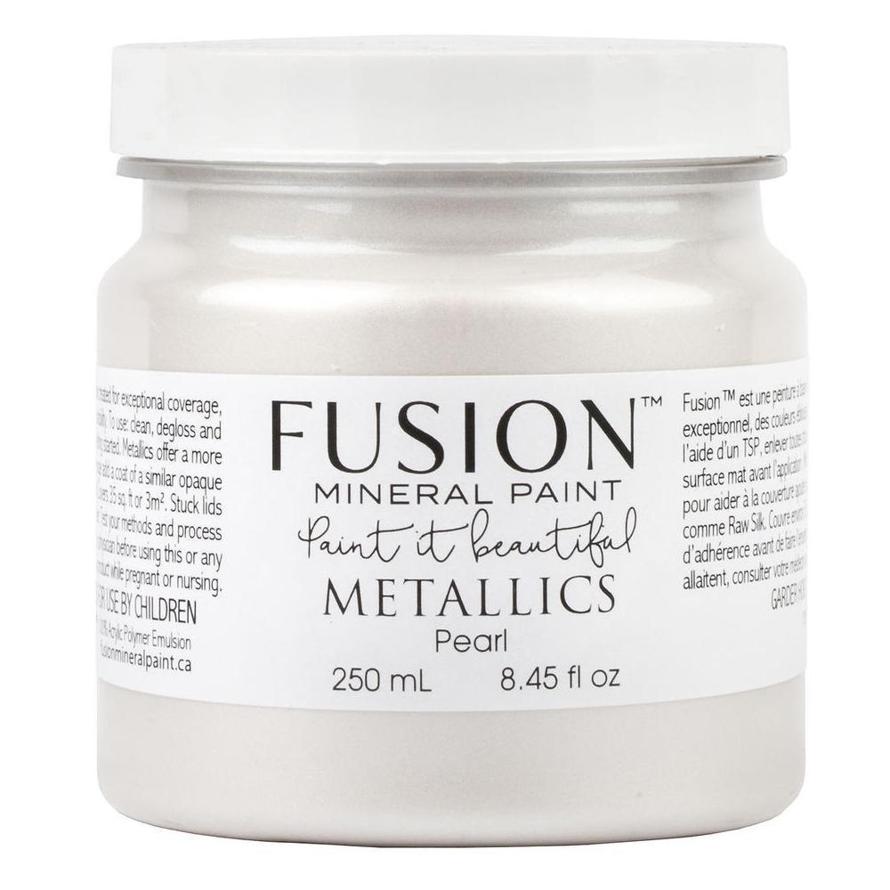 Note: Before painting with your preferred metallic color, paint a coat of a solid paint colour that is similar, as Metallics are fairly transparent this will help with coverage. For Pearl Metallic, use Fusion's Raw Silk as an undercoat.
