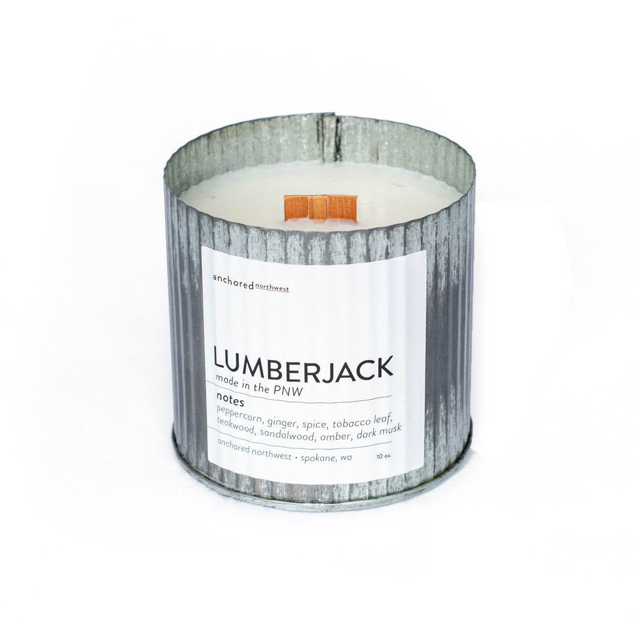 Soy Wax, Galvanized Tin, Wood Wick, Fragrance/Essential Oil Blend