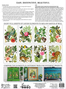 This ends up being about two times the amount of designs as compared to our previous transfers! In this new format, the rub on images lend themselves to both large furniture makeovers as well as smaller decor projects because you can more easily cut them apart, arrange them as you wish, and store them without worrying about losing the non-stick backing.