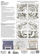 This ends up being about two times the amount of designs as compared to our previous transfers! In this new format, the rub on images lend themselves to both large furniture makeovers as well as smaller decor projects because you can more easily cut them apart, arrange them as you wish, and store them without worrying about losing the non-stick backing.