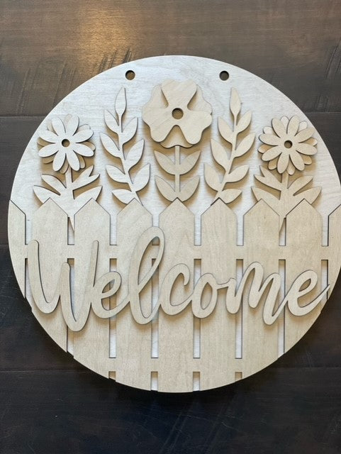 This 15" Door Hanger kit is an unfinished paint it yourself kit. All pieces come unfinished/unpainted and will need to be glued. You can finish with paint and/or stain to your desired look.