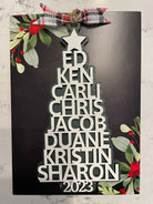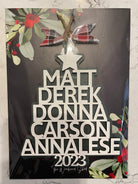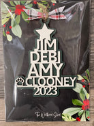 Each comes with a random colored bow on top and twine for hanging. White lettering with Evergreen backer that really makes the names pop. Professionally packaged as shown so you can just give them as is.