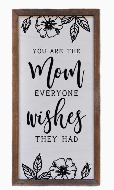 You are the mom everyone wishes they had. This all wood sign is built into a wooden box frame with a rustic touch. We strive to mix the perfect blend of rustic and modern styles that will last for years. All of our signs can be easily hung directly off of the frame or will stand upright on shelves or desks.